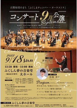 古関裕而のまち「ふくしまチェンバー・オーケストラ9月公演」